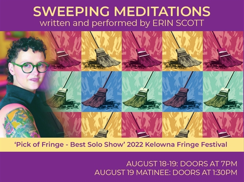 <p>Sweeping Meditations is a feat in storytelling comedy about uncovering personal truths and the power in meditative action. Award-winning spoken word poet Erin Scott finds herself sweeping her life away, hiding the truth of her personal desires below the tattered rug of their first marriage, before deciding to flip the broom right-side round and start fresh.The show is a participatory, gentle, humourous, and meditative experience.There will also be a Saturday Matinee at 1;30 pm.</p>