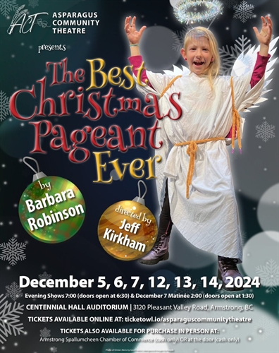 <p>Asparagus Community Theatre is proud to present “The Best Christmas Pageant Ever”, directed by Jeff Kirkham. In this hilarious Christmas classic, a couple struggling to put on a church Christmas pageant is faced with casting the Herdman kids – probably the most inventively awful kids in history. You won’t believe the mayhem – and the fun – when the Herdmans collide head-on with the story of Christmas! <br />Don’t miss this hilarious and charming production suitable for ALL AGES. <br />December 12, 13, 14 at 7:00 pm</p>