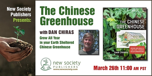 Join us in this one-hour presentation with author Dan Chiras as he shares how you can become a more self-sufficient gardener, growing and harvesting a variety of fresh fruits and vegetables year-round, with your own Chinese greenhouse.Chinese greenhouses are earth-sheltered, solar-heated, east-west oriented, intelligently glazed, and well-insulated. They have proven highly effective in growing warm-weather vegetables and fruits like green peppers and tomatoes in cold climates through fall, winter, and early spring using passive solar energy as the sole heat source.Dan Chiras, PhD, is the author of 38 books, including The Chinese Greenhouse, Power from the Wind, Power from the Sun, and The Homeowners Guide to Renewable Energy. He has taught workshops on solar electricity and passive solar heating for the Evergreen Institute, the American Solar Energy Society, the Colorado Renewable Energy Society, the Missouri Solar Energy Industries Association, and the University of Colorado. Over the past 45 years, Dan has published articles on natural building, green building, solar electricity, passive solar design, self-sufficiency, and sustainability. He has been growing in greenhouses for nearly two decades and in his own passive solar Chinese greenhouse since 2017. Dan lives in Gerald, MO.Book giveaway during the event!25% discount code for all our books by Dan Chiras offered during the event.All zoom registered attendees will be entered to win a subscription to Harrowsmith Magazine.(Must attend to win)New Society Publishers’ mission is to publish books for a world of change in a way that has a minimum impact on our environment.