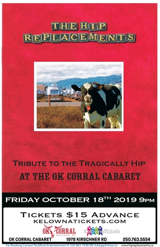 Check out one of the worlds TOP tributes to The Tragically Hip – The Hip Replacements Live – Friday, October 18th!Flashback Friday’s featuring $3.50 Corona’s!!Doors 9 PMShow 10 PM