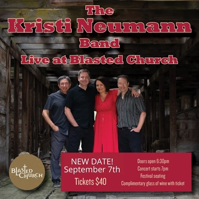 <p>Join us for The Kristi Neumann Band Live at Blasted Church Winery on Sat., Sept.7th. Enjoy the music from Kristi Neumann, a singer/songwriter originally from Montana who now resides in British Columbia. Kristi plays solo as well as with The Kristi Neumann Band. Tickets: $40, includes a glass of wine. This event does sell out, get your tickets!</p>