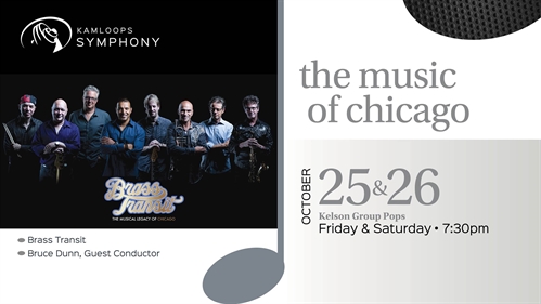 We are teaming up with Brass Transit, the world’s foremost Chicago tribute band, to present The Music of Chicago. There are two performances of this dynamic and crowd-pleasing performance; Friday, October 25 and Saturday, October 26, both at 7:30 pm. Barring any delays on the repairs to the roof, this concert will be taking place in Sagebrush Theatre.Brass Transit was formed in 2008, with its accomplished, award- winning roster intent on paying tribute to the decades-long, multi-platinum songbook of Chicago. Since then Brass Transit has toured North America steadily, dazzling audiences with flawless performances and spectacular attention to detail. Their performances have left crowds in awe, inspiring multiple standing ovations and comments like: “Spine-Tingling!” and “Perfect in every detail!”Brass Transit goes far beyond just replicating the songs; they embody the music. They also recently scored their show for full symphony orchestra with original arrangements that are truly spellbinding. Hear hits like, Saturday In The Park, 25 or 6 To 4, If You Leave Me Now, Feelin’ Stronger Every Day, and You’re The Inspiration enhanced with the full sound of the KSO.Leading the orchestra for this concert will be Guest Conductor Bruce Dunn, the KSO’s Music Director Emeritus.Tickets for The Music of Chicago are $48, $10 Youth (under 19), $15 KSOundcheck Members, and can be purchased from Kamloops Live! Box Office at 250-374-5483 or www.kamloopslive.ca.Pops Series Sponsor: Kelson GroupSeason Sponsors: CFJC TV, Uptown Chefs, Total Concept, Fairfield Inn and Suites by Marriott, New Gold New Afton Mine, Radio NLPerformance Sponsors: Criterion Capital Group of RBC Dominion Securities and Daley & Company.