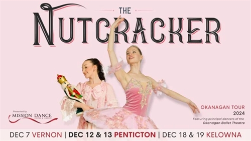 <p>MISSION DANCE COMPANY brings their annual enchanting and beautiful production of “THE NUTCRACKER” to the Cleland Community Theatre this December 12th & 13th, 2024. Featuring principal dancers of the OKANAGAN BALLET THEATRE. <br />All audience members will be swept away in time by the magic of this age old tale in this production featuring the breathtaking dancing of the locally established Okanagan Ballet Theatre and the impressive young dancers of Mission Dance Company as they all fill the stage on their toes… leaving everyone to wonder how they can balance and twirl on just the tip of their special pointe shoes. Child friendly yet entertaining for all generations. A story full of so many characters to enjoy: fun, suspenseful, beautiful, eccentric, kind, ridiculous, mischievous, charming. <br /> A 2-hour event which includes the performance plus MANY EXTRA special offerings: <br />– REDUCED TICKET PRICE for all CHILDREN 12 & under <br />– “Gifts for the Season” Silent Auction <br />– Picture taking with the stars (by donation) <br />– Poster signing by your favourite characters (by donation) <br />– Post-Performance Reception with “MEET & GREET” the Nutcracker CAST!</p>