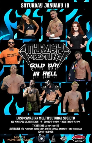 Quick to return to Penticton for the 2020 year and without a doubt weve got a Helluva show coming! Matches like “Dream Killer” Jayce D’Arcy vs “The Top Young Gun” Sean Gaston, “Fantastic” MattXStatic vs Slave the Homicidal Maniac , “Cougar Meat Kid” Collin Cutler vs Ace Redmann Jr and others to be announced featuring “Bomber” Braydon Goss, “Vixen” Jade, Danni Deeds, “Top Drawer” Michael More, Danny Knightmare and the BC Interior Champion Scarlett Black!Tickets as usual will be available at Pentagon board shop and Castle Comics or online at Ticketseller.ca $15 each or 4 for $50$20 after 7pm.