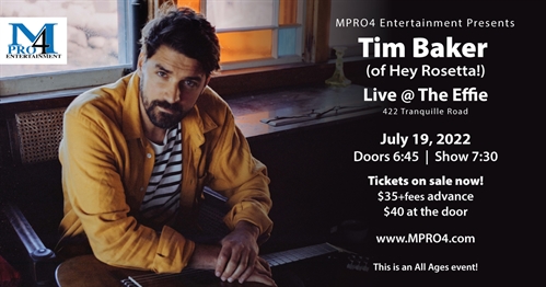 <p>Tim Baker is known as the writer and frontman of the much-acclaimed Newfoundland group, Hey Rosetta!. They are a Juno-nominated, Polaris-shortlisted, heavily awarded band that created poetic, powerful alternative music for over a decade.Following the hiatus announcement of Hey Rosetta!, Baker released his beautiful debut solo album, Forever Overhead (Arts & Crafts) in April 2019. A blend of piano ballads with ebullient folk-rock tracks, the record is also brushed with the qualities of 70s singer-songwriters (think Jackson Browne and Randy Newman) and contemporaries like First, Leif Vollebekk, and The Barr Brothers. It was received with adoring ears by fans and was met with critical acclaim by music media.In 2021, Baker’s writing delved deeper into escapism, social isolation, climate crises, and loss of innocence. This broadened perspective culminated to the recording of his upcoming sophomore album in the spring of 2021 in a custom made studio at the world famous Logo Island Inn. The first single from the album, “Lucky Few”, was released on May 11th, 2022.Notable Highlights• 2020 East Coast Award winner for Video of the Year for “All Hands”• 2020 East Coast Music Award winner for Solo Recording of the Year Forever Overhead• 2020 June Nomination for Songwriter of the Year for “All Hands”, “Dance”, and “The Eighteenth Hole”• 2019 Polaris Long List for “Forever Overhead”“Nostalgic and nuanced, with a chorus that nods to Jackson Browne and buoyant, bubbling verse worthy of Feist”~ Rolling Stone“It captures complex feeling in a big hearted way…I think he’s such a special songwriter and performer”~ NPR (World Cafe)“Baker’s voice rings out just as heart-wrenchingly on its own atop guitar and piano”~ CBC Music————————————–The Effie Arts CollectiveJuly 19, 2022Doors 6:45Show 7:30Tickets on sale now!$35+fees advance$40 at the doorwww.mpro4.comThis is an All Ages event!</p>
