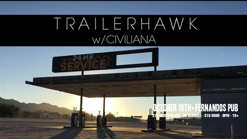 Americana band, TrailerHawk live at Fernando’s Pub with guests CIVILIANA. Friday, October 18th, 2019$8 Advance / $10 DoorTRAILERHAWK:Stick a pin in a map somewhere between the California hills, Motor City and Nashville, and there you’ll find TrailerHawk. Blasting out haunted melodies, country-soaked Americana and jagged rock n’ roll, this northern band digs at the roots of a rich, southern sound.And the roots go deep. Long-time fans of the Canadian music scene may recognize the branches on the band’s family tree: Trailerhawk boasts members of legendary Canadian groups Matthew Good, Sons of Freedom, Ginger and Sunday Morning. You’ll find Don Binns on bass fiddle, Lanny Hussey on pedal steel, vocals, and guitars, Rod Bruno on lead and rhythm guitars, while the incomparable Carmen Bruno sings her tales of life, liquor, laments and love on the run.www.trailerhawk.comCIVILIANAwww.civilianamusic.com