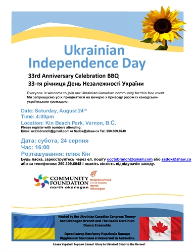 Tel: 250.309.6948Hosted by the Ukrainian Canadian Congress Thomp- son Okanagan Branch and The Sadok Ukrainian Dance Ensemble.With thanks to the Community Foundation and Neighbourhood Small Grants!
