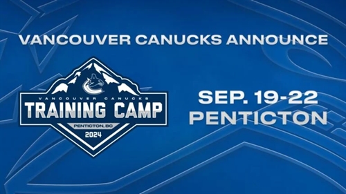 <p>The Vancouver Canucks announced today that their 2024 Training Camp will be held in Penticton, BC, from Thursday, September 19th to Sunday, September 22nd. All on-ice sessions will take place at the South Okanagan Events Centre, home of the Vancouver Canucks Young Stars Classic and the Penticton Vees of the British Columbia Hockey League (BCHL). Besides the daily skates, the team will also play a Blue – White scrimmage on Sunday. This is the first time training camp will be held in Penticton since the fall of 2010. <br />The Canucks practice sessions will be open to the public and will feature other free activations at the South Okanagan Events Centre, continuing the excitement from the previous week’s Young Stars Classic. <br />More information about public access to Training Camp will be announced at a later date. <br /> Since 1974, the Canucks have held Training Camp in a number of communities across British Columbia, including Abbotsford, Courtenay, Duncan, Kamloops, Parksville, Penticton, Powell River, Prince George, Vernon, Victoria, and Whistler. The team has also held Training Camp overseas on one occasion, travelling to Stockholm, Sweden in 2000.</p>