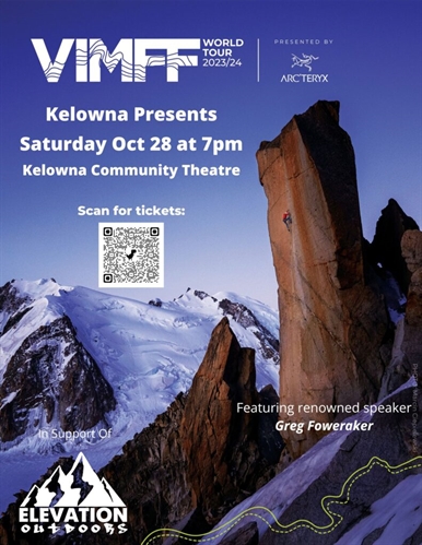 <p>Elevation Outdoors is proud to bring the Vancouver International Film Festival to Kelowna! Each year, the VIMFF takes award-winning and other selected films on tour across Canada, the USA and around the world. It gives local communities the chance to enjoy some of the world’s best mountain films, raise funds for local causes and support talented filmmakers. Proceeds from the event help us create scholarship opportunities in our programs for youth facing barriers to participation in our community.</p>