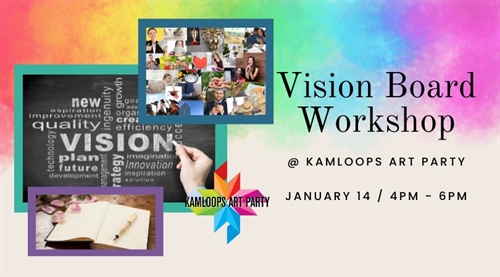 <p>This 2 hour workshop will provide you with techniques to gain a deeper insight into your goals and help create a clear vision for year the ahead. Whether it’s personal, business, spiritual, or a combination of all of all of these – this workshop is a great way to get you ready for 2023!<br />Each ticket ($59) includes a guided journaling session, 16×20 canvas, all supplies and professional instruction from local healing art coach, Jennii Dyer.<br />This event is for ages 18+. Although we provide aprons please wear appropriate painting clothes.<br />Space is limited! Reserve your ticket online today @ <br />https://www.kamloopsartparty.com/events/vision-board-workshop-1?fbclid=IwAR0dstIZG4CXvMmJS9PiMRPZhJS_coB0OCVMPumFM_HKyv_T1wsrbh-1vmI</p>