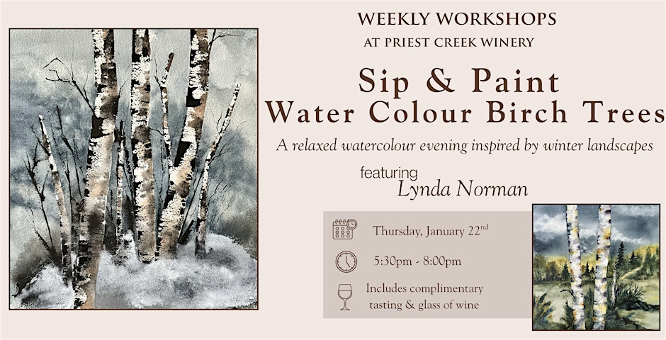 Have you ever wanted to learn the art of watercolour? Now’s your chance! Join us for an inspiring and relaxing evening led by talented local artist Lynda Norman, as she guides you step-by-step through creating a beautiful birch tree watercolour painting.