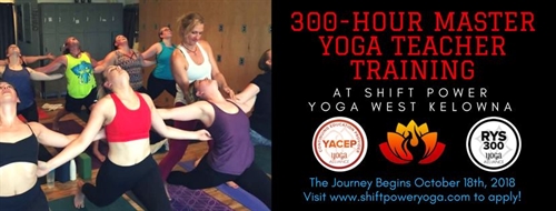 Our 2018-2019 West Kelowna 300hr training begins in 2018 and runs into 2019. Training dates are as follows: October 18th – 21st, November 15th – 18th, December 6th – 9th, January 10th – 13th, May 2nd – 5th, June 6th – 9th, July 11th – 14th, and August 8th – 11th. Modules will run Thursday 5 – 9, Friday 5 – 9, Saturday 8 – 8 and Sunday 8 – 5 with some modules having follow-up team phone calls and/or practice sessions as determined by group.The promise of this program is that you will deepen both your knowledge and your working mastery of teaching and living yoga. You will leave with a new understanding of what it is to share this practice and your truth powerfully and contribute to the connection, growth and leadership of those around you as a natural expression of who you are. We will dive deep into the art and mastery of delivering an impactful message, teaching to diverse populations, advanced anatomy and assisting, the history and ancient traditions of yoga including teaching meditation, the art of sequencing, creating workshops, the power of yin yoga, and yoga as service.Please complete the application on our website:http://www.shiftpoweryoga.com/teacher-training/west-kelowna-300hr-yoga-teacher-training/Once received and reviewed you will be contacted by phone for a brief interview prior to acceptance to the training. Once accepted a $250 non-refundable deposit will be required to reserve your spot. The total tuition for this full program is $3995 (+gst), or $500 per module if you are not taking the full program. Your $250 deposit will be deducted from the balance. Space is limited and you are encouraged to apply early! Payment plans available.
