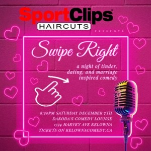 Join us for a night of hilarity and delicious wine as we bring together the best of both worlds at Dakoda’s Comedy Lounge! Our wine tasting comedy show will feature the exquisite wines of Haywire Organic Winery, paired perfectly with the comedic stylings of Kelowna’s top comedians.Sip on a glass of Haywire’s finest while laughing out loud to the side-splitting performances of our talented comedians. Whether you’re a wine aficionado or a comedy lover, this event is sure to tickle your taste buds and your funny bone.Experience an unforgettable evening of wine and laughter with friends, family, or colleagues at Dakoda’s Comedy Lounge. Get ready to sip, savor, and laugh the night away with us!