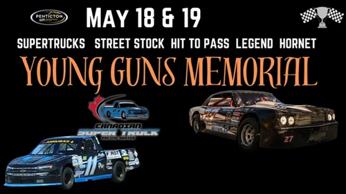 <p>The Young Guns Memorial 2024! We are excited to announce the Canadian Supertrucks will be joining us for the Young Guns Memorial! featuring Legends, Hornets, Street Stocks, Supertrucks and Hit-to-Pass. <br />Day 1 – May 18th: Spectator Gates Open: 4:30pm | Races start: 6:00pm <br />Day 2 – May 19th: Spectator Gates Open: 2:00pm | Races start: 4:00pm <br />Online Tickets available until May 17th – General Admission Tickets will be available at the admission gates.</p>