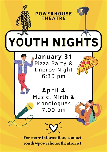 <p>?? Free Event Alert ???? Ready to Unleash Your Creativity? ??Join us for Powerhouse Youth Nights a fun, engaging, and creative event for youth! ??First up: Pizza Party & Improv Night ?????? When: January 31, 6:30 PM?? Where: Powerhouse TheatreMeet Peter Church! He’s a theatre pro who’s been rocking the stage, screen, and improv scene for over 20 years! He’s taught at some of the coolest spots across Canada (like UBC and Carousel Theatre for Young People), inspiring young minds and sparking creative energy. Now based in Kelowna, Peter is here to share his expertise with YOU.Whether you’re into acting, theatre games, or just want to try something new and fun, this event is your chance to learn from one of the best. Get ready to laugh, create, and maybe even discover your hidden talent. Plus, who doesn’t love free pizza? ???? Don’t miss out on this one-of-a-kind experience – your spotlight awaits! ??Grab your friends, bring your energy, and let’s make some magic happen ?? ??? Register at youth@powerhousetheatre.net</p>