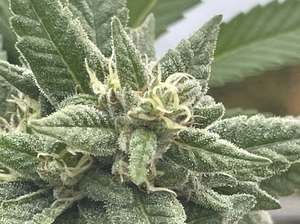 She traded a plant with a friend for one that isn’t auto flowering and it grew to be huge and began flowering in early September. Before the plants flower, the desired goal is to get them as big and green as possible.