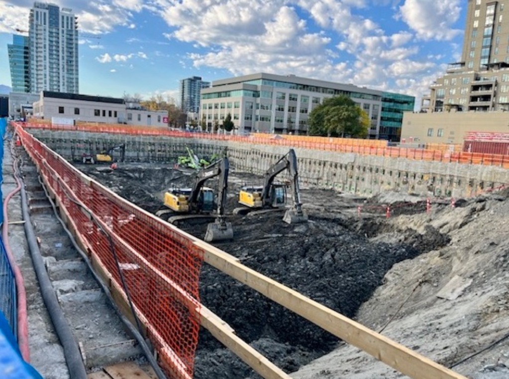 UBCO finished digging a four-storey deep hole for a parkade for its 43-storey vertical campus which has caused extensive damage to the surrounding buildings.