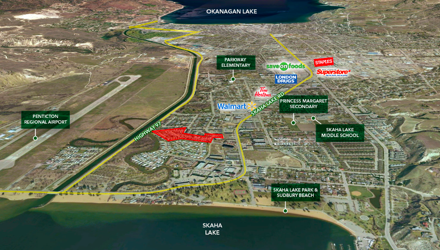 “The park benefits from all the amenities of the City of Penticton, including shopping, schools, parks and recreational facilities,” the listing by HM Commercial Realty says. “Peachtree Mall and Walmart are a few blocks away, as is Cherry Lane Shopping Centre, with Save-On-Foods, London Drugs and The Bay.”