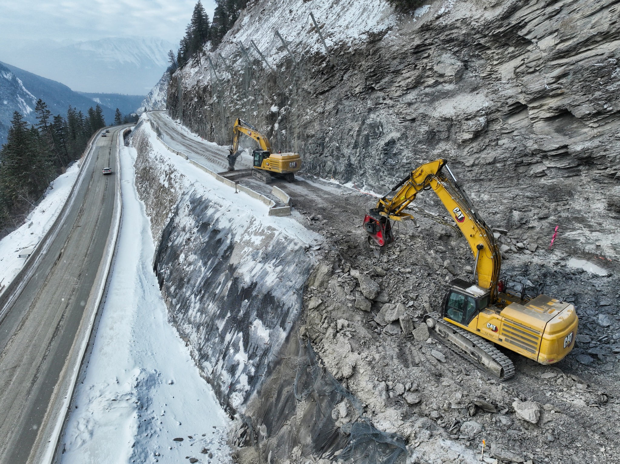 Construction is underway on the fourth and final phase of the Kicking Horse Canyon upgrade on Highway 1 east of Golden.