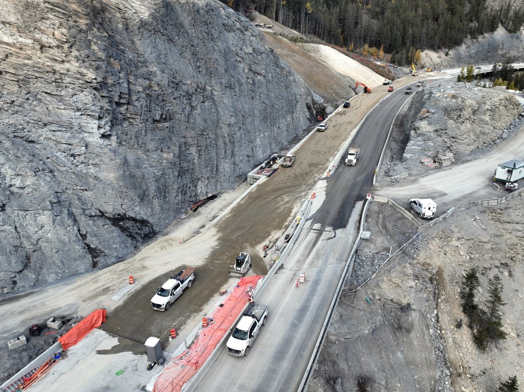 The last part of this project focused on the new westbound lanes and the associated walls and rockfall protection. The last major concrete pour on the project and completion of the Lynk, Elk and Caribou viaducts were all completed during the recent closure of the highway in the last few weeks.