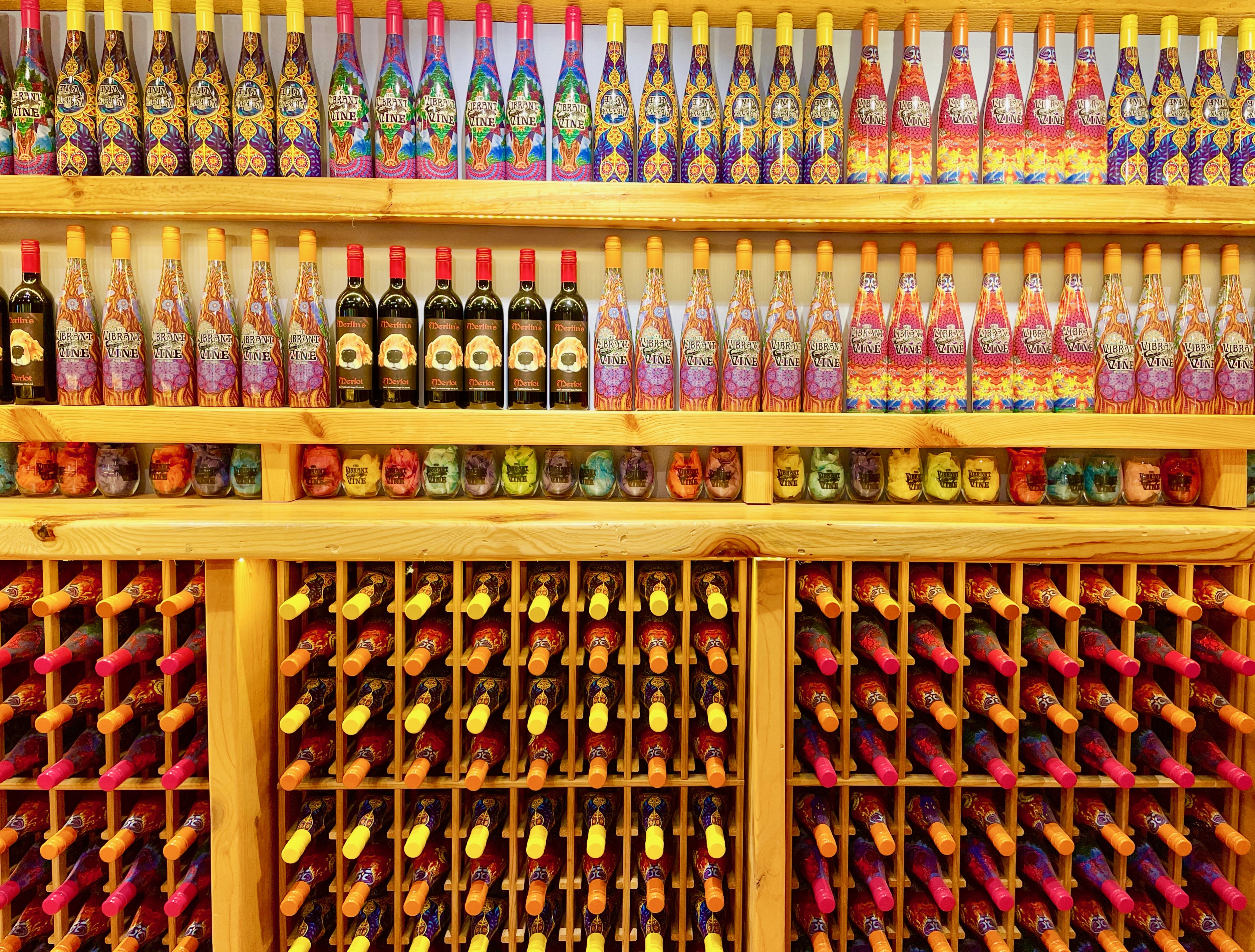 The wine bottles themselves are art. Shrink-wrapped in the designs of owners Wyn and Marion Lewis’s son Phil Lewis, the art walk gallery upstairs offers guests a thorough look at his talent. To add another unique dimension to Phil’s art is that it is 3D and guests are provided 3D glasses to wear for their tour.