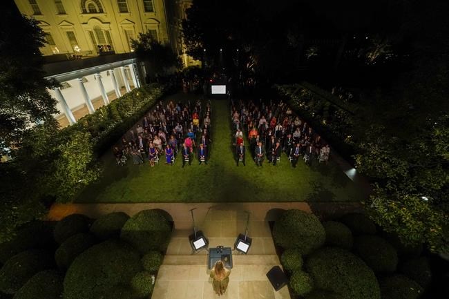 The use of the White House as backdrop continued when First Lady Melania Trump capped off the evening with a speech from the newly renovated Rose Garden.