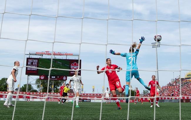 Fourth-ranked Canada steadied itself after a nightmarish start that saw its defence ripped open in the first minute from a giveaway. The Canadians, playing with Sinclair and Sophie Schmidt up front, had their moments — mostly counter-attacking off German mistakes.