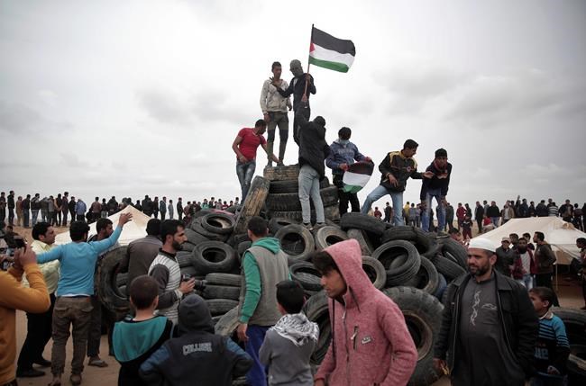 Last Friday, thousands of Palestinians marched near the border fence between Israel and Gaza, many gathering around tent encampments set up several hundred meters (yards) from the frontier. Smaller groups moved closer to the fence, throwing stones, hurling firebombs or burning tires. Israeli troops were lined up on the other side of the fence, including snipers perched on high earth embankments overlooking Gaza.