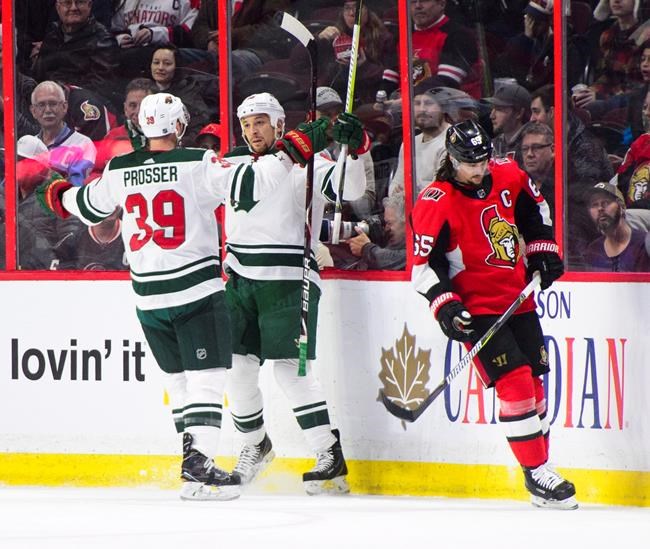 Notes: Gabriel Dumont and Ben Harpur were scratches for the Ottawa Senators Tuesday while Gustav Olofsson, Zack Mitchell and Devan Dubnyk were scratches for the Minnesota Wild… Senators forward Alex Burrows is one assist shy of 200 for his career… The Wild had killed 19 straight penalties before Erik Karlsson scored on the Senators’ first power-play attempt Tuesday… The Senators play their next three games on the road including Thursday against the Tampa Bay Lightning. The Wild play the third of four straight on the road Friday against the Florida Panthers.