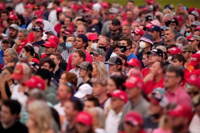 “Your state should be open,” Trump said, baselessly claiming that Democratic Gov. Roy Cooper and others were trying to hamstring their economies with restrictions to hurt his reelection. “It’s a shame what’s going on, and I’ll tell you what, on Nov. 4, every one of those states will be open. They’re doing it for political reasons.”