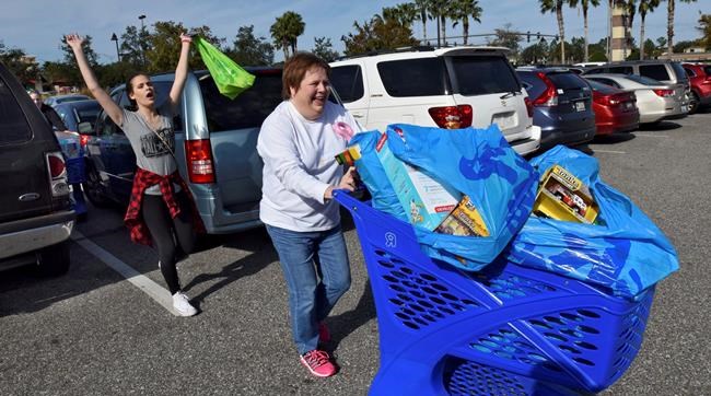 Stores like Macy’s, Walmart, Target and more were open Thursday evening in what they hope will be a new holiday tradition. Several shoppers were out looking for bargains on TVs. Other items that drew crowds were cellphones and Hatchimals — eggs with a small, animated animal inside that hatch when given attention.
