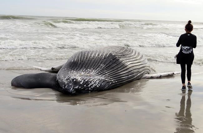 BRIGANTINE, N.J. (AP) — Marine animal welfare officials say the most recent whale found dead on a New Jersey shoreline had apparently been struck by a vessel.