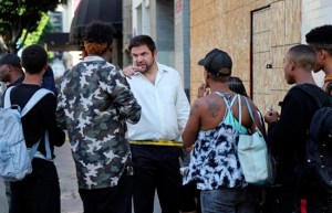 The man received a big cheer from the crowd when he stood up. Holding a towel to his head in his right hand, he pumped his left fist to acknowledge the applause. He walked to the stretcher and sat on it and was wheeled away.