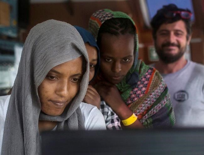 The migrants come from 14 different countries and include five women, a 9-year-old boy and four older teenagers, some of them unaccompanied. The Spanish aid group Proactiva Open Arms said they were generally in good health but some may have fuel burns.