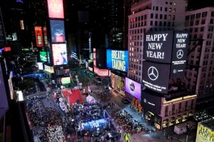 “Auld Lang Syne” and “New York, New York” played as the crowds cheered.