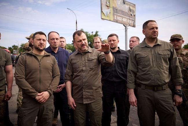 KHERSON, Ukraine (AP) — Russian forces Thursday shelled a southern Ukrainian city inundated by flooding in a catastrophic dam collapse, Ukrainian officials said, forcing a suspension of some rescue efforts hours after President Volodymyr Zelenskyy went to the area to assess the damage.