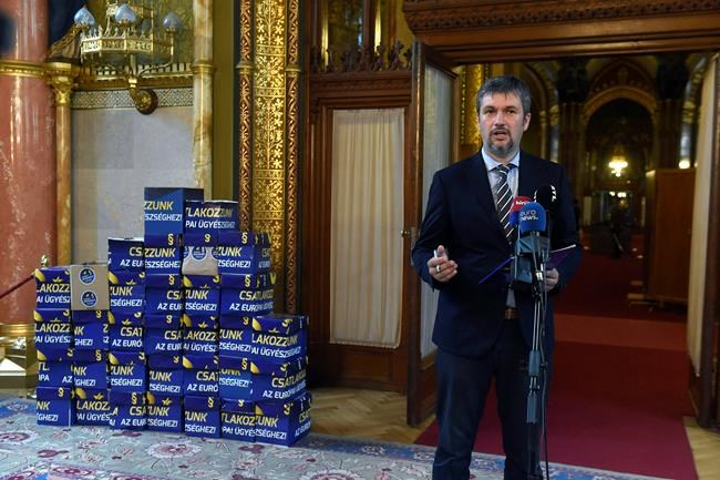 BUDAPEST, Hungary – A Hungarian politician says 680,000 people have signed an appeal pressuring the government into joining a fledgling European anti-corruption body.