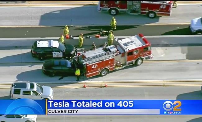 In Monday’s crash, the highway patrol said the southbound Tesla hit the rear of the Culver City firetruck, which was parked at an angle in the carpool lane while firefighters tended to a crash on the opposite side of the freeway. The truck was unoccupied at the time, and no injuries were claimed by anyone at the crash scene, the news release said.