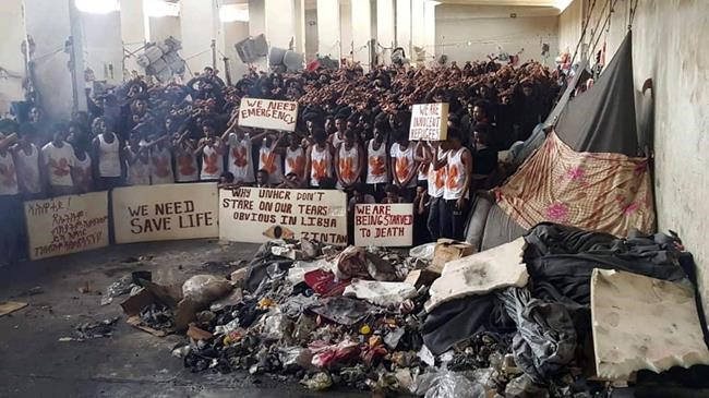 Photos and videos taken by migrants showed heaps of garbage in the hangar, parts of the centre flooded with sewage and plates of food crawling with maggots. The hangar had only four toilets, along with buckets for detainees to urinate in.