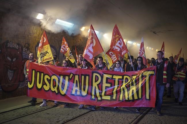 PARIS (AP) — Hundreds of thousands of people have filled the streets of France in the 11th day of nationwide resistance to a government proposal to raise the retirement age from 62 to 64. The furious public reaction to the plan has left French President Emmanuel Macron cornered and weakened.