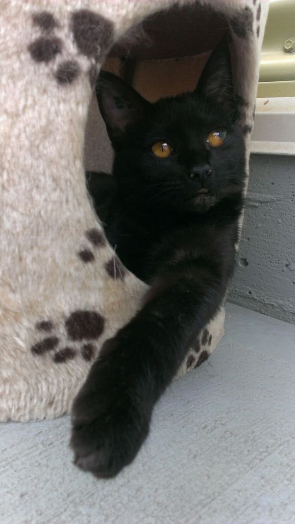 Her eye is slightly damaged and we recommend keeping her as an inside cat.