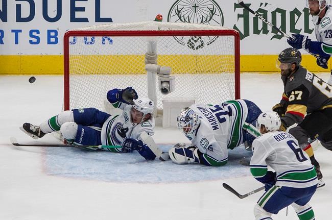 Knights’ forward Jonathan Marchessault said they also have to clean things up at their end of the ice. Pettersson, Bo Horvat and Tyler Toffoli torched them for four goals and eight points Tuesday, exposing goalie Robin Lehner to multiple point-blank scoring opportunities.