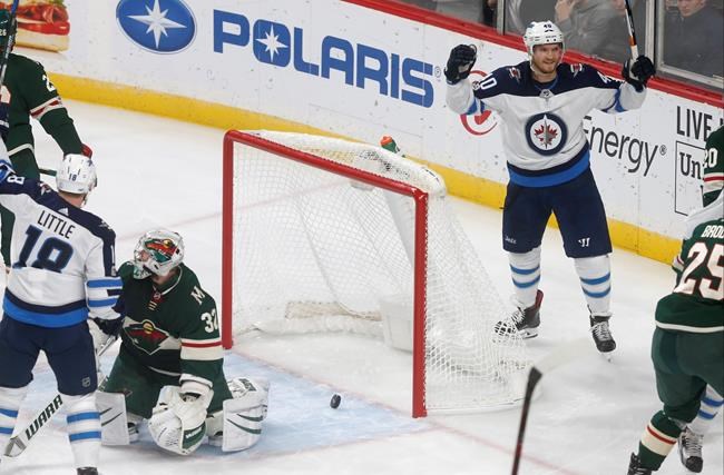 Ehlers took advantage of a mistake by Minnesota defenceman Matt Dumba in the third. Dumba tried a drop pass in the defensive zone to Mikael Granlund, but Ehlers was between them and quickly collected the loose puck, skated past Granlund and scored for a 2-0 lead.