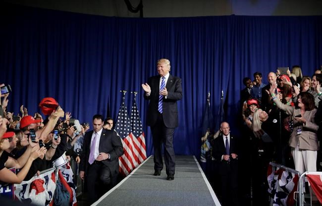 Trump made the comments Friday during a brief appearance at the Kent County Republican headquarters.