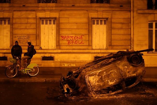 Thousands of French police were deployed to try to contain the violence, which began Saturday morning near the Arc de Triomphe and continued well after dark. Paris police said at least 110 people, including 20 police officers, were injured in the violent protests and 224 others were arrested.