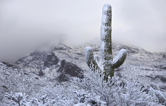 Meteorologists say the same storm produced a “once-in-a-generation” snow in California and Oregon with up to 7 feet (2 meters) accumulating in spots.