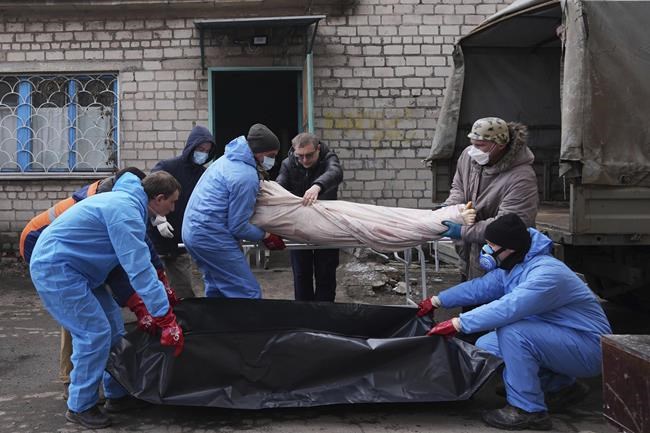 MARIUPOL, Ukraine (AP) — With bodies piling up in Russia’s nine-day siege of Mariupol, the port city of 430,000 in southeastern Ukraine, local authorities are hurrying to bury the dead in a mass grave.