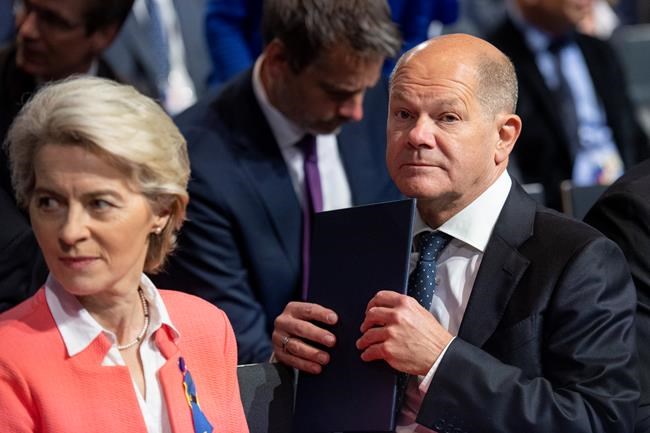German Chancellor Olaf Scholz said the meeting is addressing “how to ensure and how to sustain the financing of the recovery, reconstruction and modernization of Ukraine for years and decades to come.”