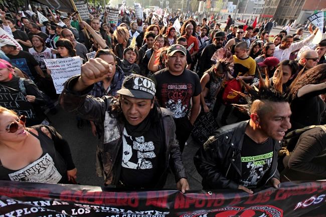 MEXICO CITY – Thousands of Mexicans marched in the capital Monday to complain about a gasoline price increase, demonstrating a day after police in Sonora state fought a pitched, three-hour battle to free a border rail crossing blocked by protesters.