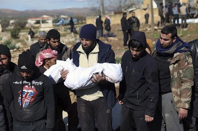 Abu Hadiya and her family were among the millions of Syrians who fled to the rebel-held territory from other parts of the country. They were originally from the village of Khsham in eastern Deir el-Zour province, but left in 2014 after the Islamic State group captured their village, said a relative who identified himself as Saleh al-Badran.